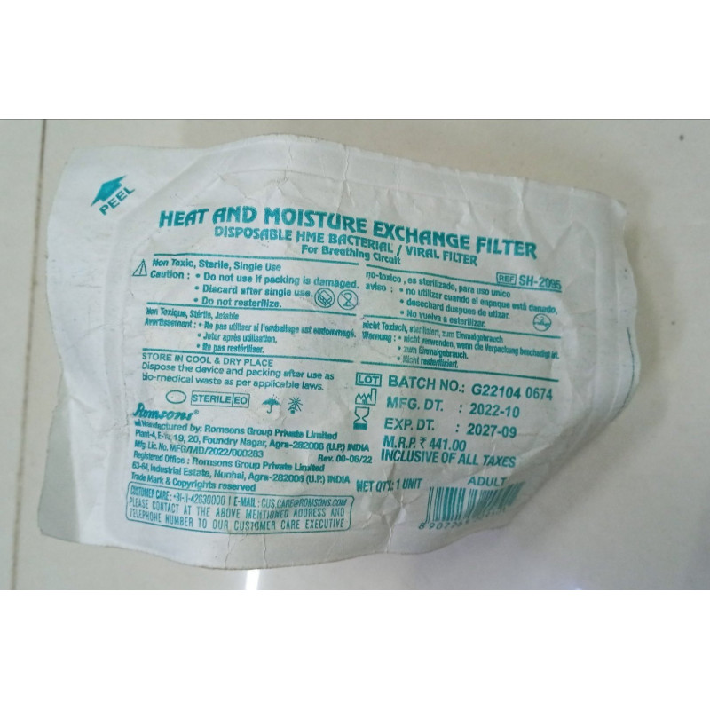 The Romsons viral filter is compatible with most standard ventilators, breathing circuits, and manual resuscitators. It is individually packed and sterile, making it a trusted choice for maintaining hygiene and patient safety.
